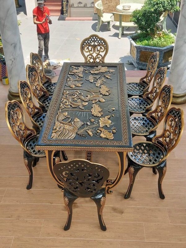 Bàn ghế nhôm với đặc điểm cấu cường lực do được sản xuất từ hợp kim nhôm đúc vì thế nó sở hữu ưu điểm nỗi trội như độ chống va đập, chịu lực tốt, đảm bảo bàn ghế nhà bạn luôn giữ nguyên như trước khi chịu tác động lớn. Bàn ghế làm từ nhôm đúc là một trong những nội thất hoàn hảo, cao cấp, tiện nghi, lý tưởng cho ngôi nhà của bạn.